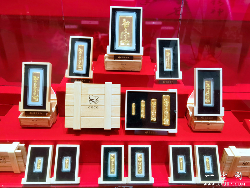 菜百总店展柜中的马年贺岁金条