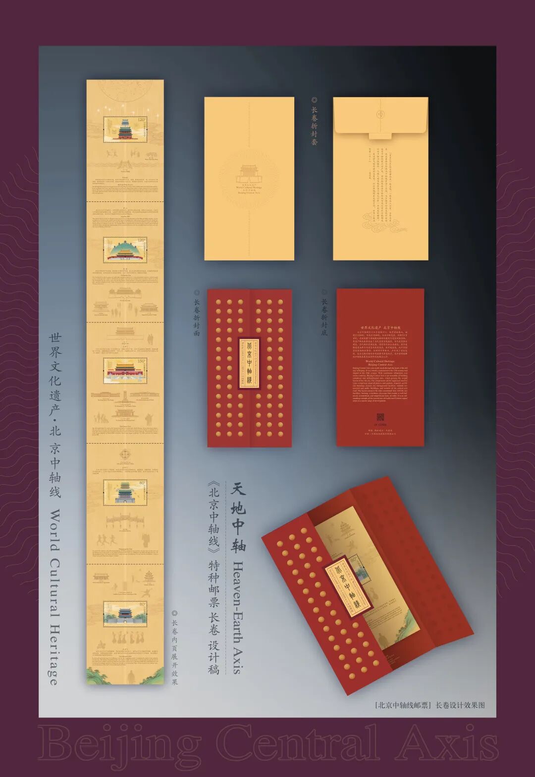 《北京中轴线》长卷版特种邮票采用折页式设计,既解决了长度问题,又提升了便携性,但与以往长卷版邮票不同的是:前8款长卷版邮票均为横式长卷设计,而《北京中轴线》长卷版邮票首次采用了竖式的长卷设计风格,这与北京中轴线由南至北纵贯北京老城的规划格局相吻合。