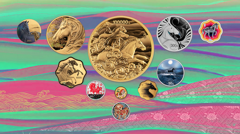 中国现代币章工艺部分来自于西方,而我们的生肖币一直坚持对传统艺术视觉图形进行研究、吸纳、创新,设计出具有民族性、独创性的生肖题材艺术作品。就像这枚金币,即是通过一定的艺术手法结合传统的吉祥寓意来塑造生肖马形象。自古以来,马就是速度、自由与力量的象征,骏马造型加上层叠的祥云,组合在一起就是“天马踏祥云”,其奔腾于九天的姿态,也象征着一种不拘一格、勇往直前的民族精神。币面构图饱满、风格华丽,也寄托了对马年风调雨顺、万事顺遂、国泰民安的美好祈愿。