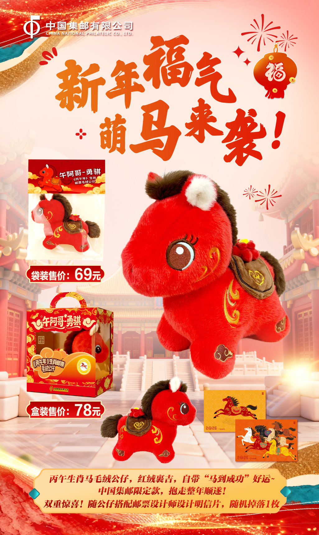 金蛇送岁辞旧景,勇骐迎春启新程。在丙午年的潮流热浪中,中国集邮有限公司精心筹备,带着“午阿哥—勇骐” 生肖邮票毛绒公仔来送福啦!