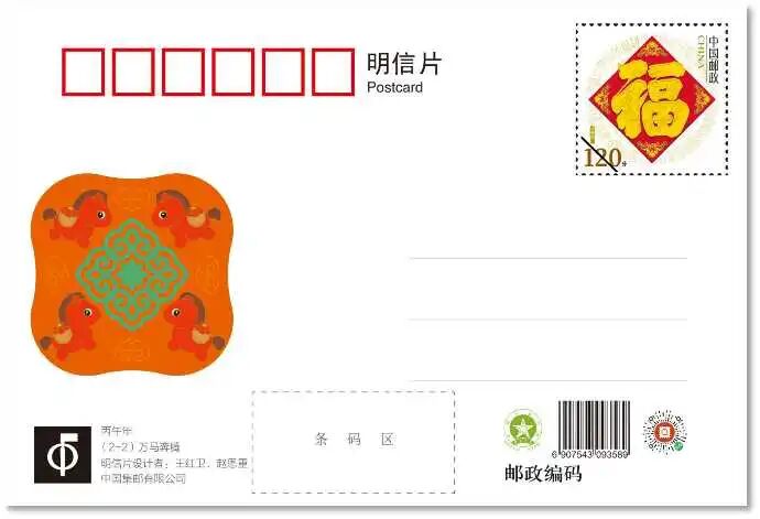 不止于此,“午阿哥—勇骐” 还带来双重惊喜!邮票设计者王红卫、赵恩重设计的明信片《一马当先》和《万马奔腾》,与公仔随机搭配一枚,明信片上贴有 “五福临门” 个性化邮票,拆箱即惊喜,方寸之间装满好运。