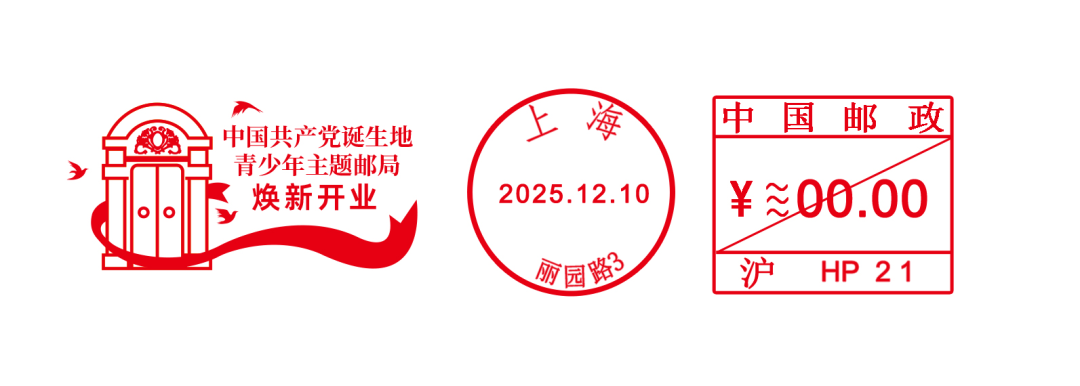 现定于2025年12月10日启用《中国共产党诞生地青少年主题邮局焕新开业》YFM118E型邮资机戳1枚。邮资机戳使用期限:启用当日。发售及收寄网点:丽园路邮政支局。咨询电话:63041676。