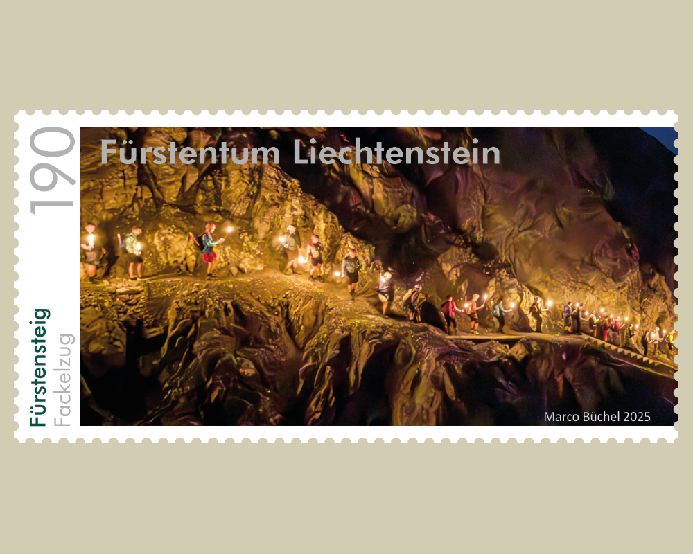 2025年10月20日-22日,2025维罗纳菲尔(Veronafil 2025, Verona)邮展举办。其展会封上所贴的邮票是6月2日发行的《全景系列:Fürstensteig 王子之路》。Fürstensteig(王子之路)或许是列支敦士登最著名的远足小径,其难度等级为 T3。这条穿越“阿尔卑斯峰”(海拔1942米)西北侧的登山道由约翰二世亲王出资修建,并于1898年开放。部分路径凿刻于岩壁之中,需要良好的脚力和平衡感,但一路上的壮丽景色绝对值得。每年在列支敦士登国庆日,还会有一场火炬游行沿着“王子之路”举行,为这条历史悠久的山道增添了节日的光彩。此枚邮票展示了王子之路的“日落”景致。展会期间,2025年11月20日发行展会封一枚,展会封上所贴的邮票是6月2日发行的《全景系列:Fürstensteig 王子之路》。