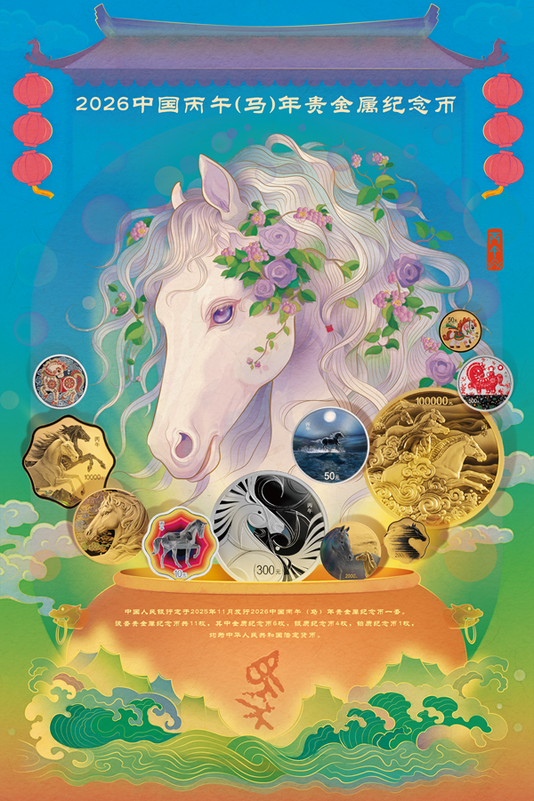 但对艺术创新而言,马,作为耳熟能详的主题,推陈出新确非易事。对已发行45年的中国生肖纪念币而言,不落窠臼更是难上加难。一看到2026中国丙午(马)年150克圆形金质纪念币背面图案,不仅顿觉耳目一新,而且内心瞬间被打动。细细品读这枚币,艺术设计和造币技术互融共生,散发着生命的温度,闪烁着诗意与光芒,尽显金属艺术的独特魅力。