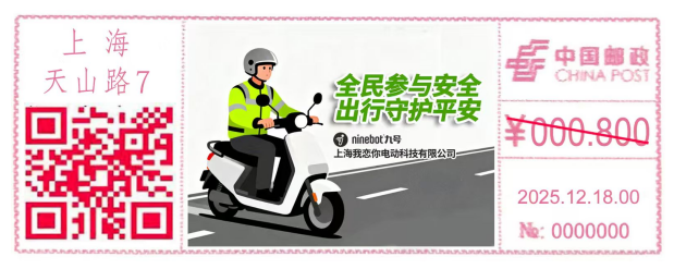 现定于2025年12月18日启用《全民参与安全,出行守护平安》C51型邮资机戳1枚。邮资机戳使用期限:启用当日。发售及收寄网点:天山路邮政支局。咨询电话:62591056。