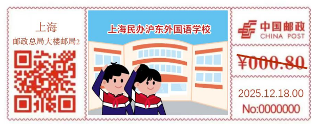 现定于2025年12月18日启用《上海民办沪东外国语学校》CX51型邮资机戳1枚。邮资机戳使用期限:启用当日。发售及收寄网点:邮政总局大楼邮局(四川路桥邮政支局)。咨询电话:63063972。