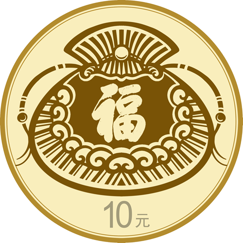 最终,我在币面构图上,将刺绣荷包作为视觉核心,其圆润的轮廓,既贴合金币的圆形形制,也暗合中式“圆满”的审美追求。荷包正中央用苍劲的“福”字,给出年味里最直白的祝福,这亦是整个设计的灵魂所在。同时,设计中还有一处特别的巧思:荷包口紧紧系牢,藏着“福不外漏”的吉祥寓意,暗喻让福气稳稳地凝聚其间。荷包边缘则以祥云纹勾勒,进一步具象化“吉祥高升”的美好寓意。