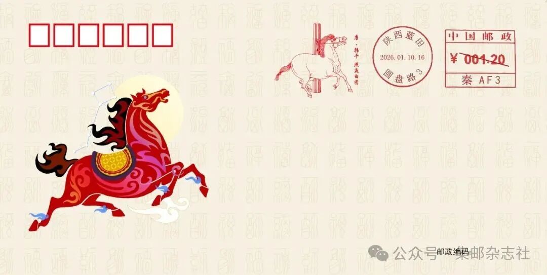 ![]() 经中国邮政集团有限公司批准,陕西省蓝田县邮政分公司将于2026年1月10日启用“牧马图”“照夜白图”邮资机戳各一枚。 为方便大家收藏,《集邮》杂志微店上架了这两枚邮资机戳的实寄封。 ![]() ![]() ![]() 挂号实寄封一组2枚,使用美术封为载体,启用首日分别加盖邮资机戳各一枚,挂号实寄给预订者。识别上方二维码即可预订。