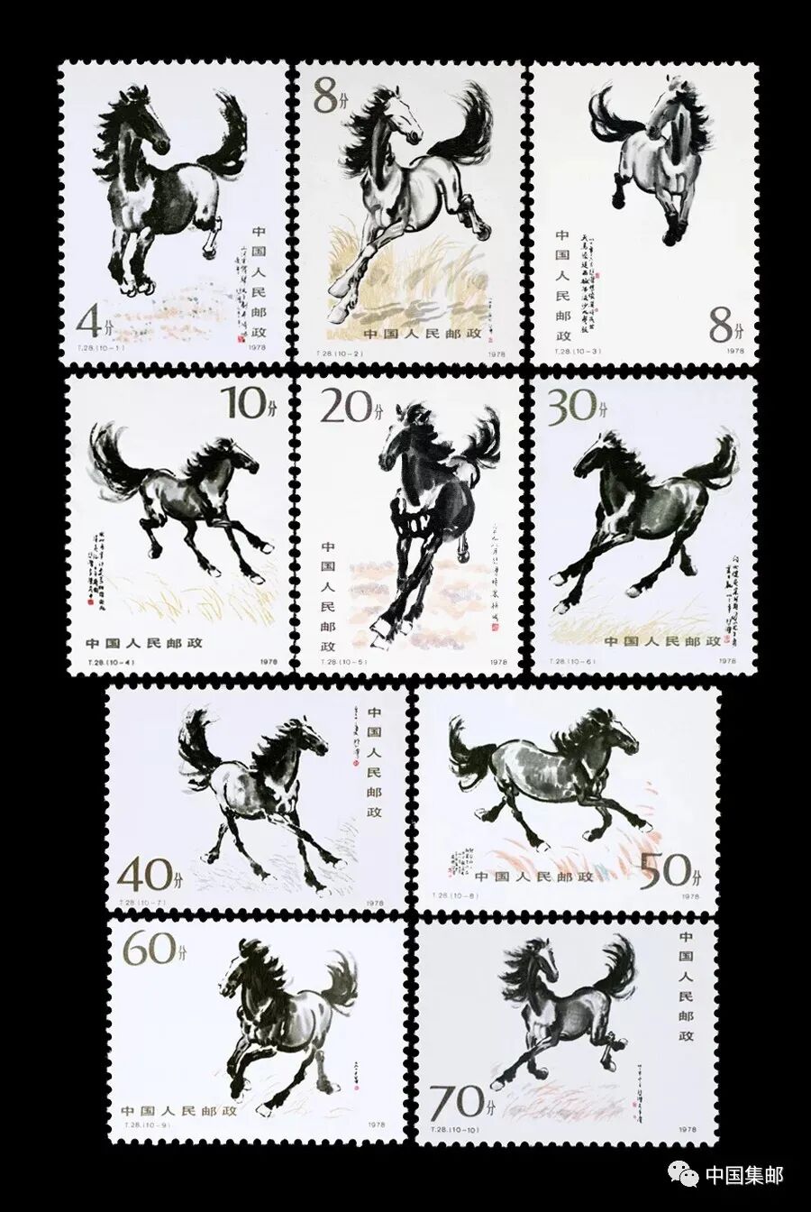马四肢修长且矫健,是天生的奔跑健将。其身姿轻盈,奔跑时四蹄如风,尽显自由与豪迈之姿。本套邮票图案选用了徐悲鸿的画作《奔马》,其作品巧妙融合了西画的写实技巧与国画的意境之美,彰显出卓越的革新精神。在此枚邮票图案中,一匹骏马跃然纸上,神态轩昂,筋骨强健。