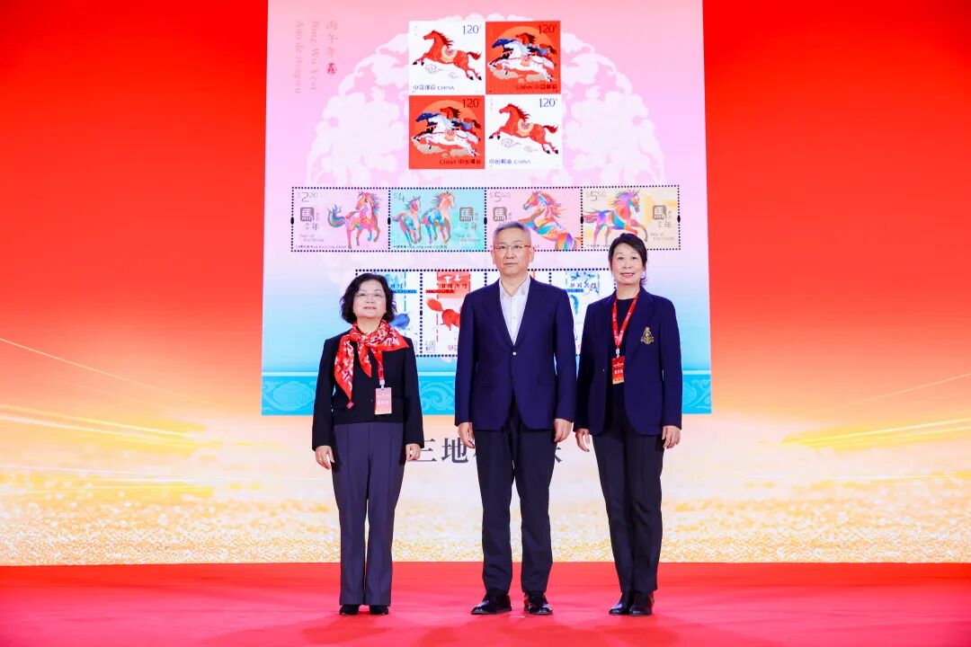 仪式上,中国邮政携手港、澳邮政部门共同印制的生肖同题材邮票三地小全张同步揭幕。