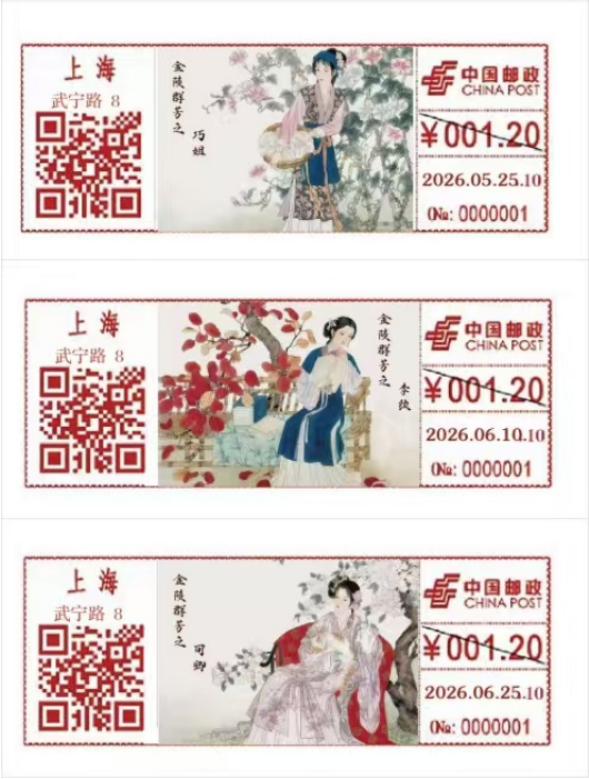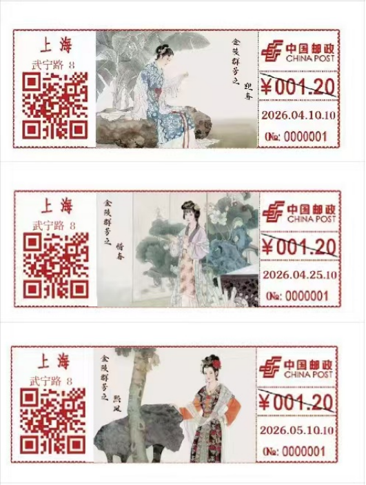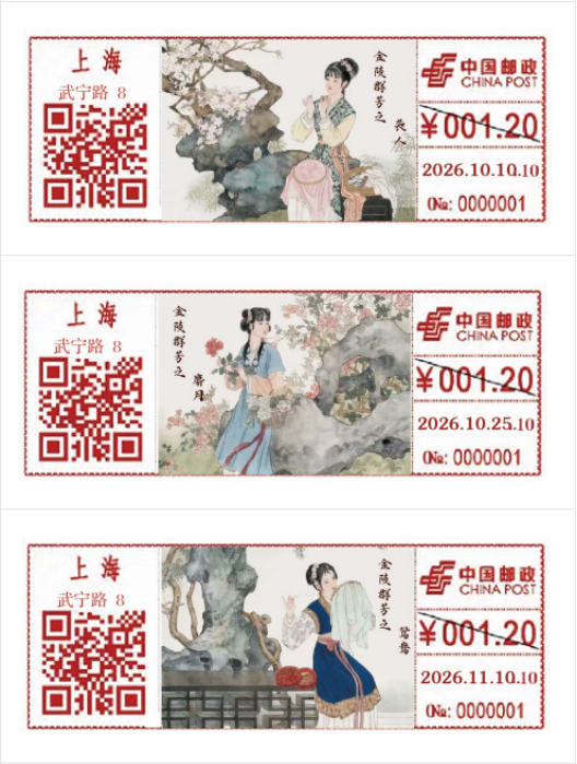 现定于2026年1月10日至2026年12月25日期间启用《金陵群芳》系列CX51型邮资机戳24枚。邮资机戳使用期限:(具体见下表)。发售及收寄网点:武宁路邮政支局。咨询电话:52909632。