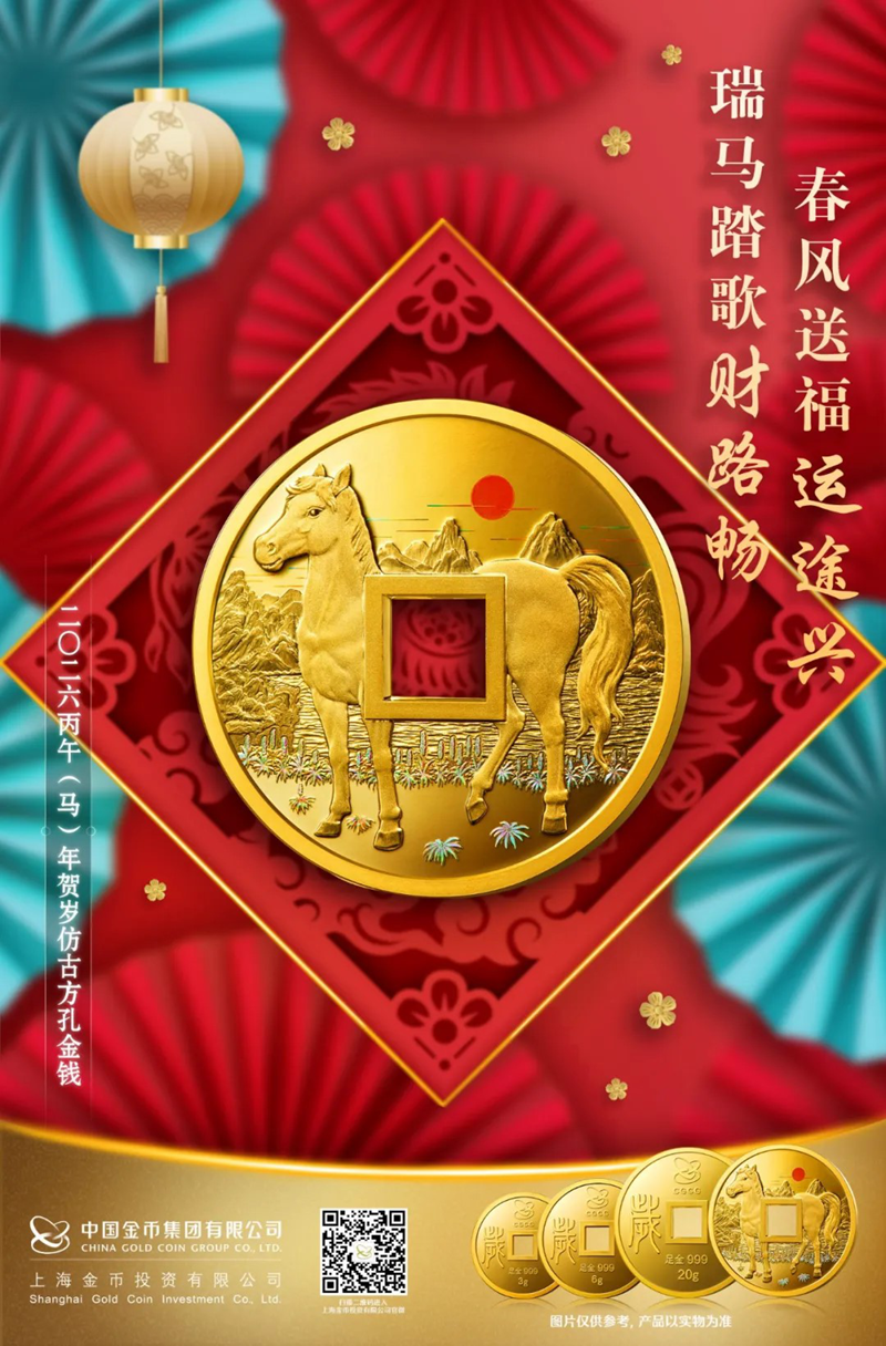 2026丙午(马)年贺岁仿古方孔金钱将于即日起在全国各经销渠道陆续面市,愿此枚“金钱”伴你事事顺遂,幸福安康,骏马奔腾,前程似锦!