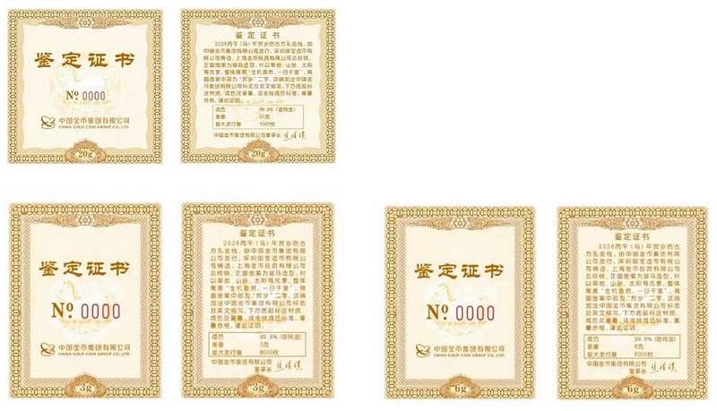 丙午新禧,骏马迎春!2026丙午(马)年贺岁仿古方孔金钱于2025年1月6日隆重发行,该产品由中国金币集团有限公司发行,深圳国宝造币有限公司铸造,上海金币投资有限公司总经销。规格分别为20克、6克、3克,成色均为足金999,最大发行量分别为1000枚、6000枚、8000枚。