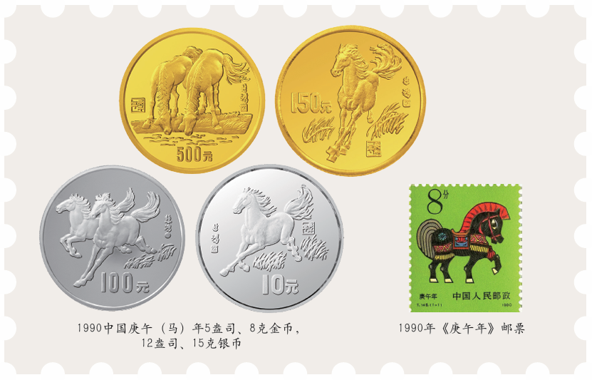 2013年底,中国人民银行还发行了一枚第一轮生肖马年贺岁普通纪念币,其主体图案为手持寓意“吉庆有余”挂件的小女孩骑在木马上玩耍的场景,颇具童趣。总体上来说,第一轮生肖邮币可谓开局即为经典,已成为一个永不过时的文化印记。