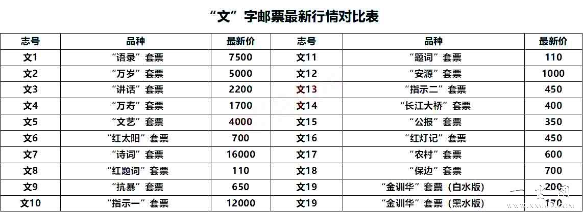 “文”字邮票最新行情对比表