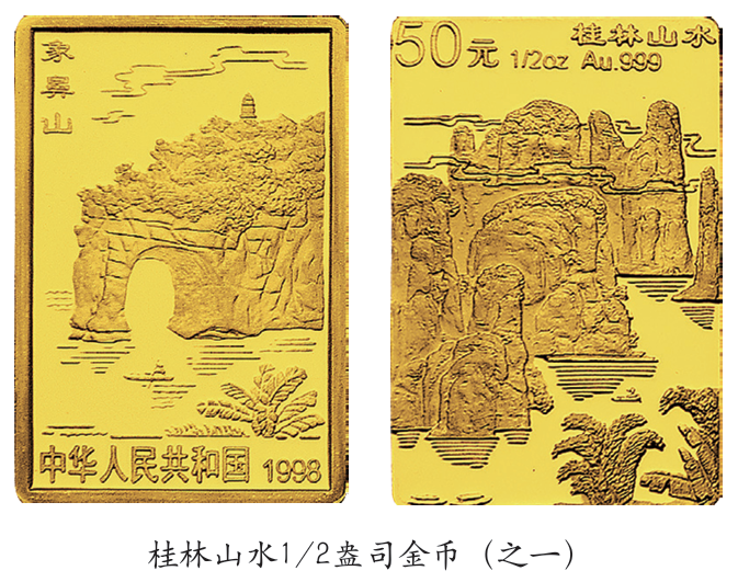 此外,1998年发行的桂林山水金银币,同样展现了以山青、水秀、洞奇、石美而闻名的桂林山水,更展现了桂林地区独特而深厚的人文历史和人文风情。