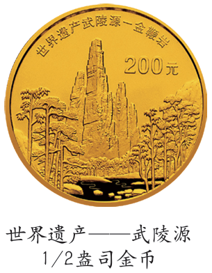 2003年的世界遗产——武陵源金银币,其1/2盎司金币的正面图案由“龙虾花”与闻名于世的土家锦传统织锦图案交汇而成,背面图案则是武陵源金鞭岩。奇崛曼妙的自然风光是上天赐给湘西儿女的珍贵礼物,土家儿女又用智慧和勤劳开创了绮丽的民族文化,自然风光与人文风情融合在一起,才是真正的武陵源,真正的世界遗产。