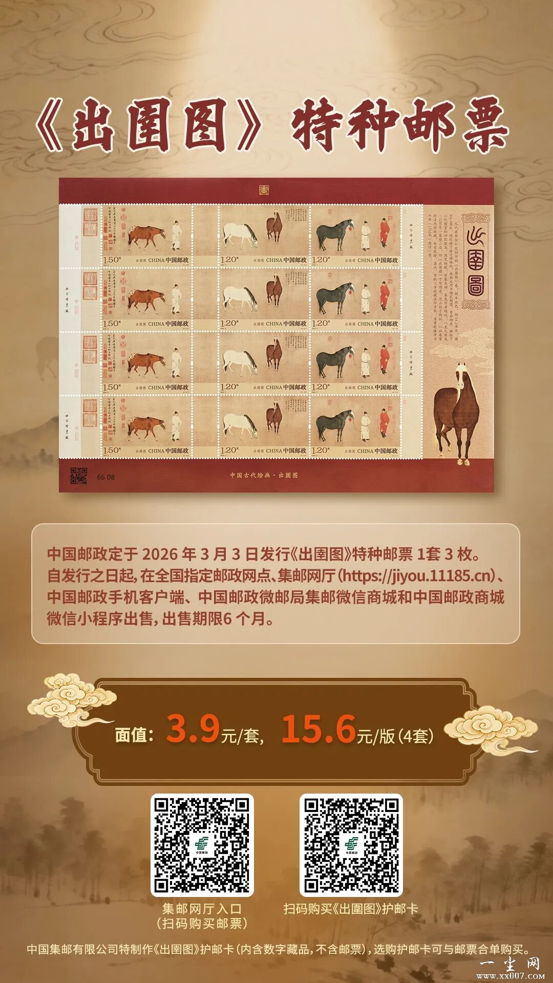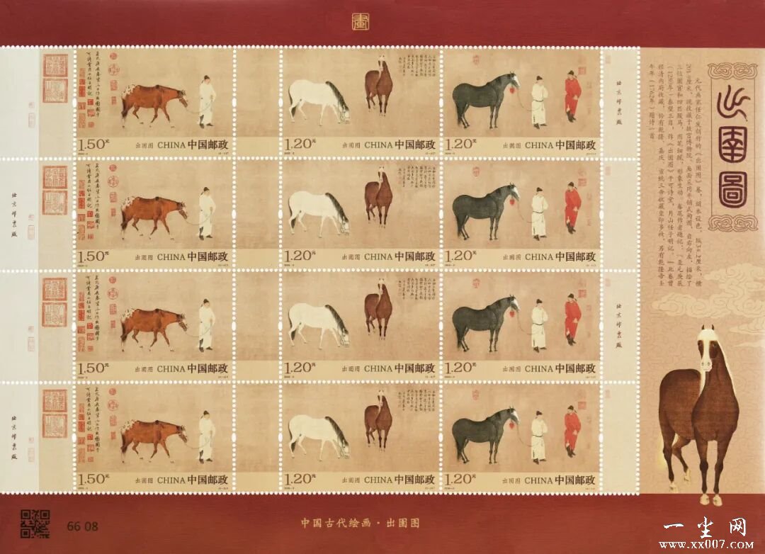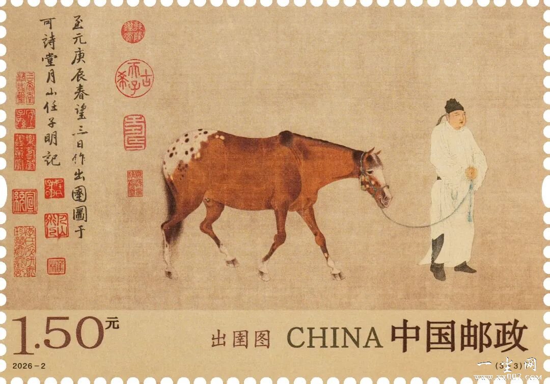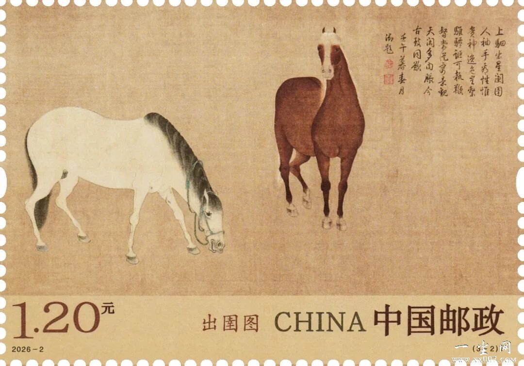 中国邮政定于2026年3月3日发行《出圉图》特种邮票1套3枚。详情如下: