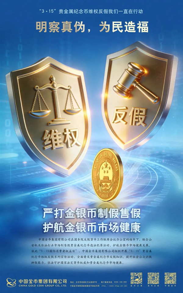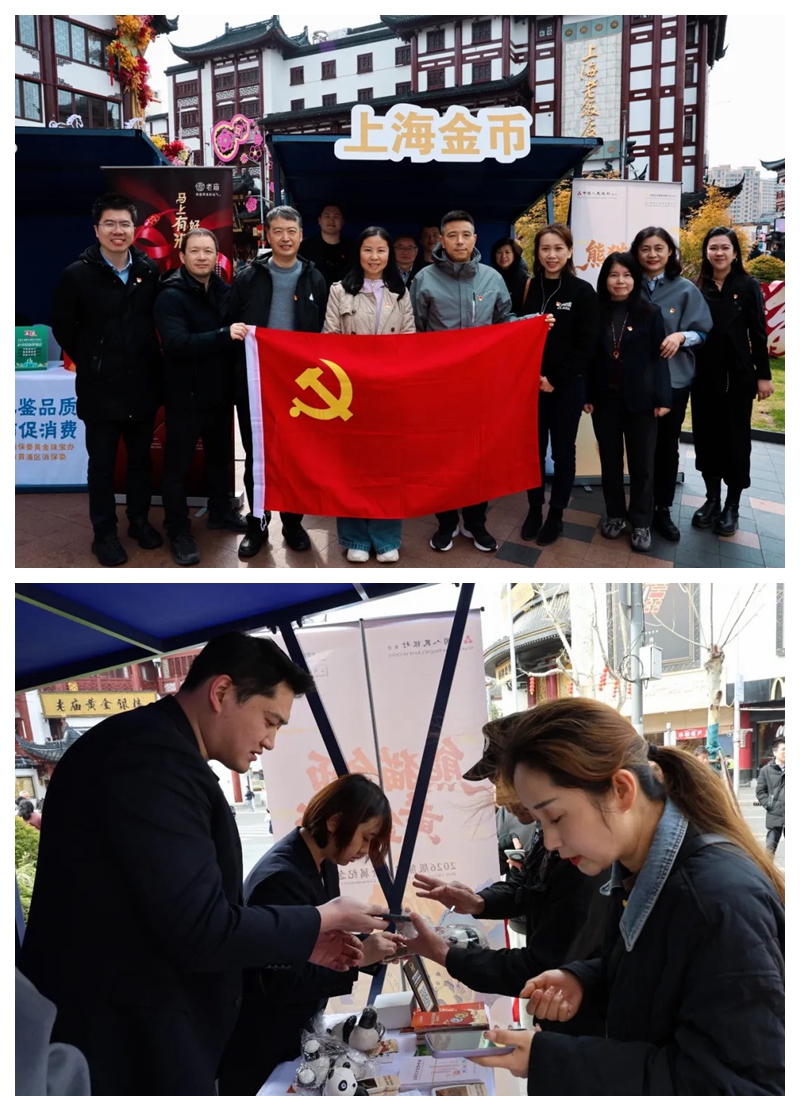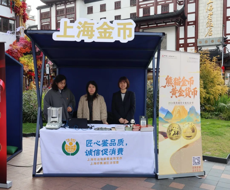 3・15 消费者权益日到来之际,上海金币秉持“人民至上”理念,将贵金属纪念币维权反假作为重点,以“严打金银币制假售假,护航金银币市场健康”为主题开展系列宣传活动,把反假知识送到群众身边,切实守住消费者“合法权益”与“钱袋子”安全。 3月15日,中国金币上海零售中心积极响应号召,参与由上海市消保委黄金珠宝饰品办公室、黄浦区消费者权益保护委员会、黄浦区市场监督管理局联合主办的 “匠心鉴品质 诚信促消费” 2026年3·15黄金珠宝专场咨询活动,以专业力量助力消费维权落地。