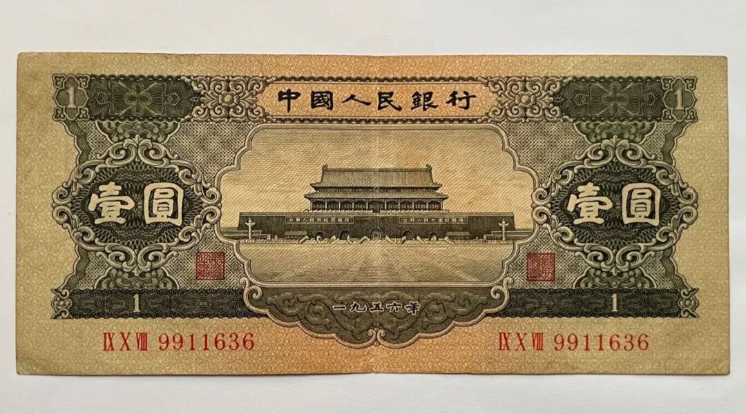 从1955年发行到被紧急替代,这张红1元在市面上流通的时间,满打满算也就四年多。
