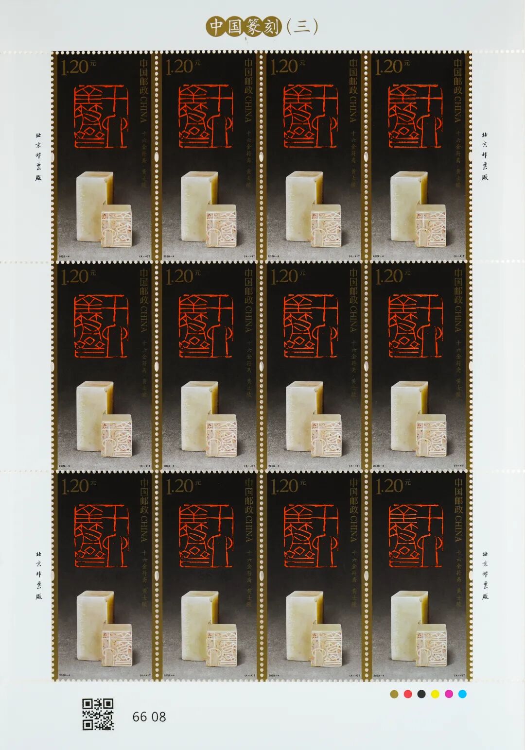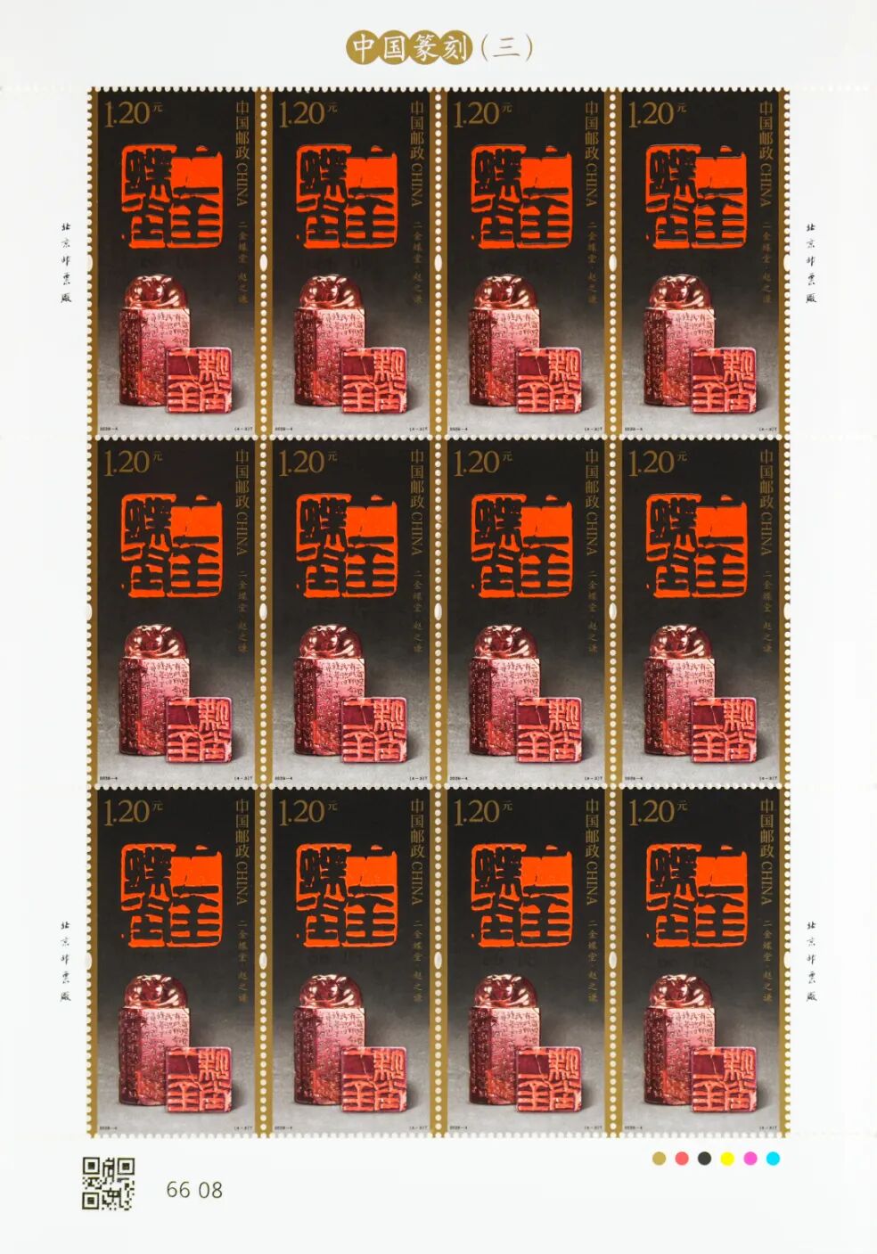 中国邮政定于2026年4月20日发行《中国篆刻(三)》特种邮票1套4枚。详情如下: