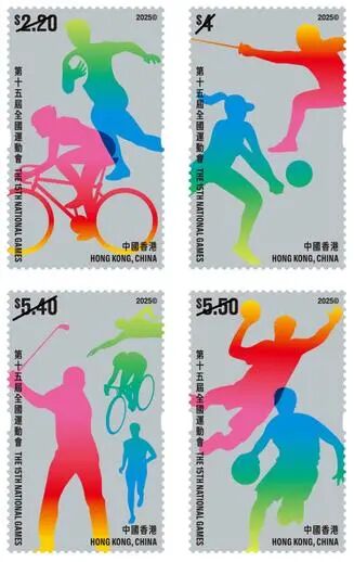 11月9日,香港邮政将发行《第十五届全运会》特别邮票一套4枚,面值分别为2.20元、4元、5.40元、5.50元。邮票设计为伍广图。