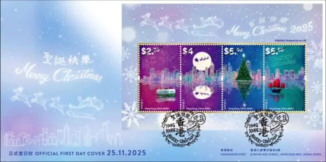香港邮政于2025年11月25日发行《圣诞邮票V》特别邮票一套4枚,面值分别为2.20元、4元、5.40元、5.50元,同时推出小全张一枚。邮票设计为李嘉朗。