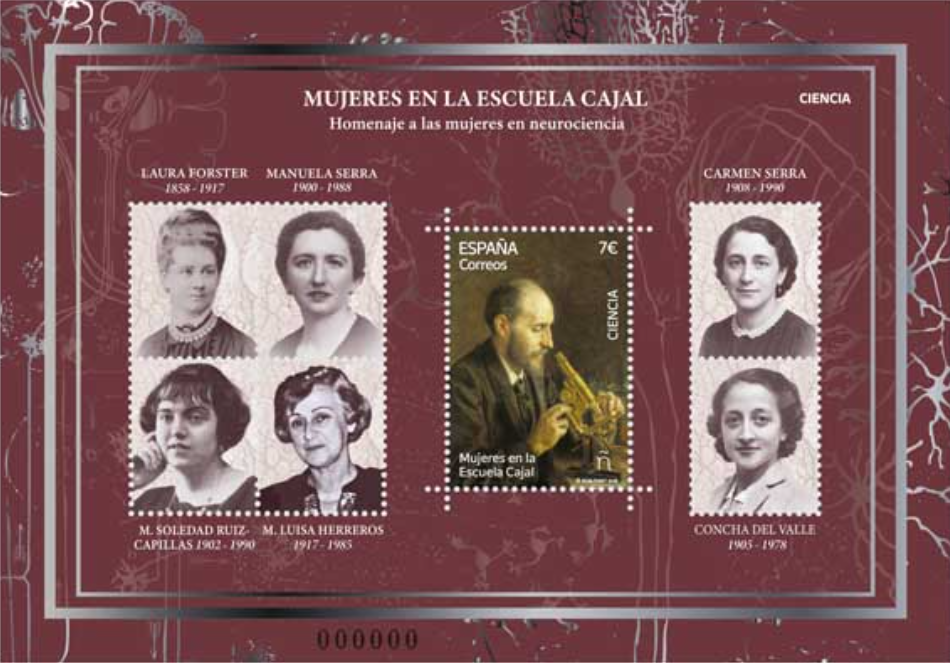 10月17日,发行《科学:卡哈尔学派中的女性》小型张一枚。二十世纪初,当女性仍被排斥在职业生活之外尤其是科学领域之外时,数位年轻女性在生物研究实验室与西班牙神经组织学家、诺贝尔生理学或医学奖获得者圣地亚哥·拉蒙-卡哈尔共同工作。该实验室是卡哈尔学派的摇篮,现为西班牙国家人类学博物馆所在地。这些杰出女性包括澳大利亚籍女博士劳拉·福斯特、卡门·塞拉和曼努埃拉·塞拉姐妹、孔奇塔·德尔巴列、玛丽亚·索莱达·鲁伊斯-卡帕利亚斯博士以及玛丽亚·路易莎·埃罗罗斯博士。