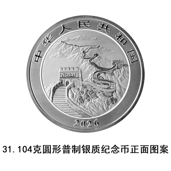 该银质纪念币正面图案为长城图案,并刊国名、年号。