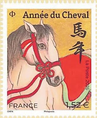 法国于2月6日发行马年生肖邮票1套2枚,这是法国邮政第二轮生肖邮票的第八套,图案设计融中国传统水墨画与现代艺术的特点于一体,体现马的进取精神和生肖文化。邮票上印有中文“马年”,同时发行含全套2枚邮票的纪念版小全张。
