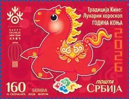 塞尔维亚于2月12日发行马年生肖邮票1枚,图案表现了中国文化和旅游部2026年“欢乐春节”吉祥物“吉祥马”的形象。