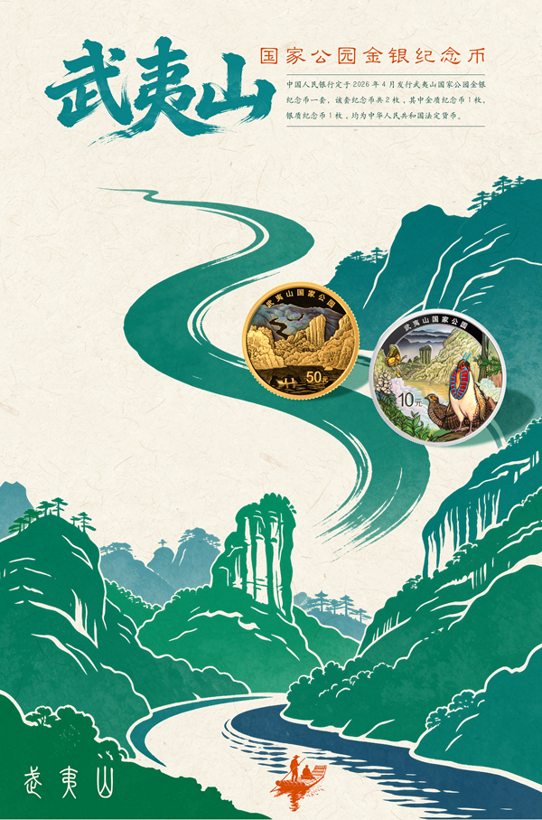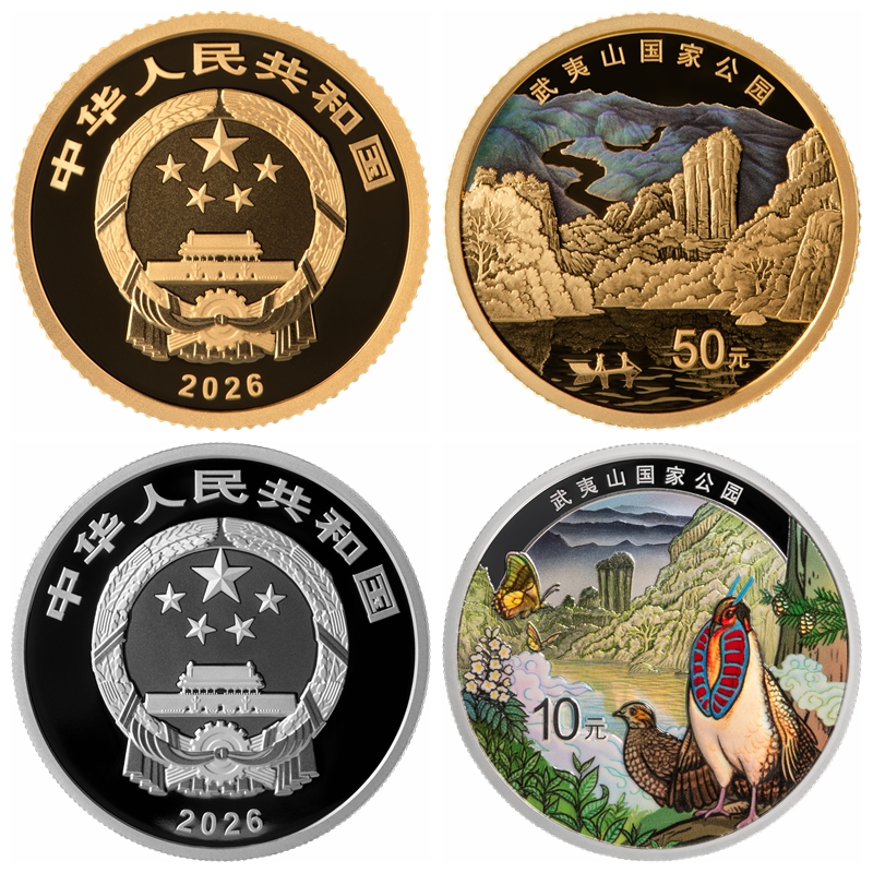 中国人民银行定于今天(4月3日)发行武夷山国家公园金银纪念币一套。该套金银纪念币共2枚,其中金质纪念币1枚,银质纪念币1枚,均为中华人民共和国法定货币。该套金银纪念币均为精制币,金银成色均为99.9%。