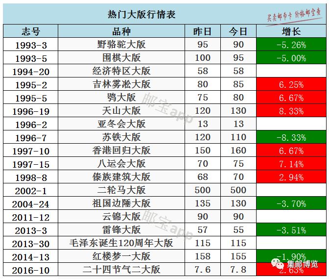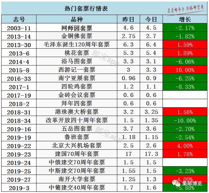 鲁班小型张今日最新价格为3.3元,昨日价格为3元,下跌9.09%。青藏铁路小型张今日最新价格为5.5元,昨日价格为5.8元,下跌5.17%。