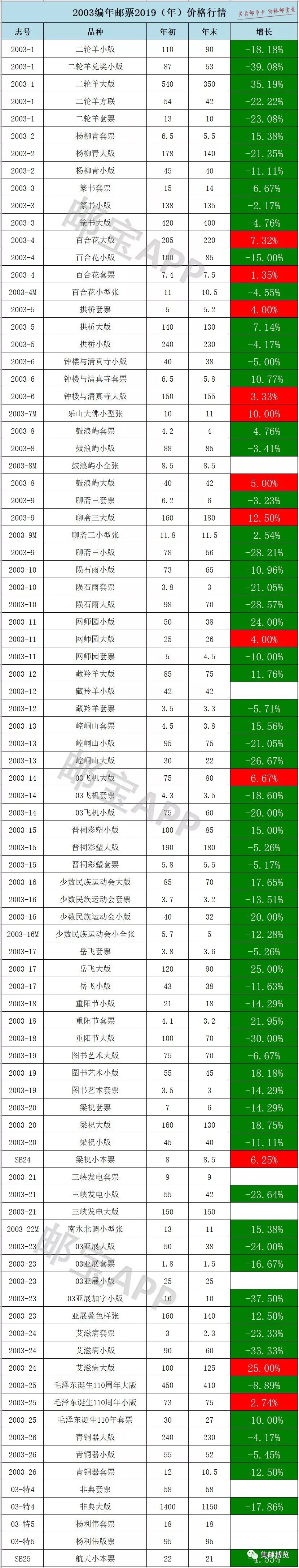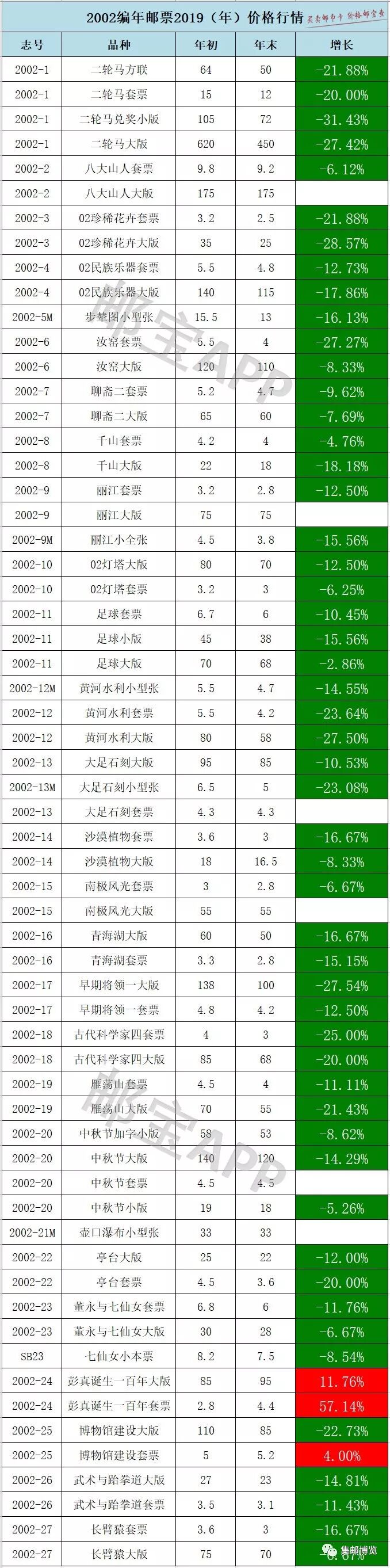 小编为大家整理了自1992年起编年邮票在2019年度的行情对比,将分几期陆续推送,