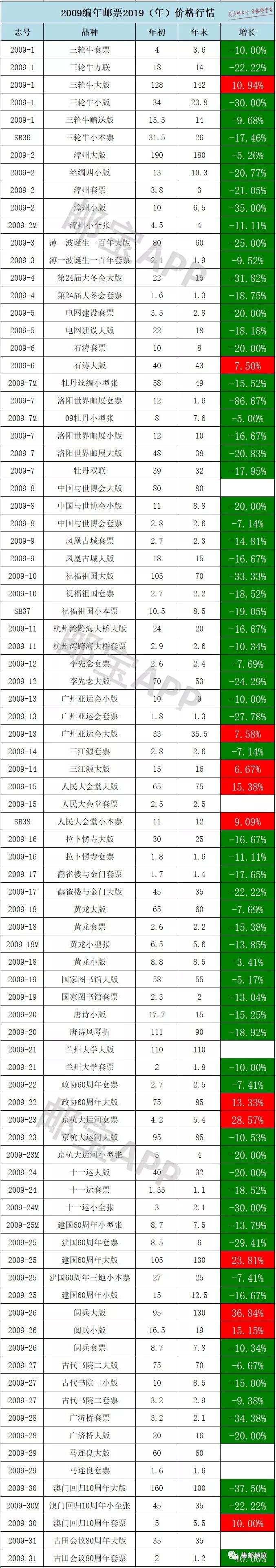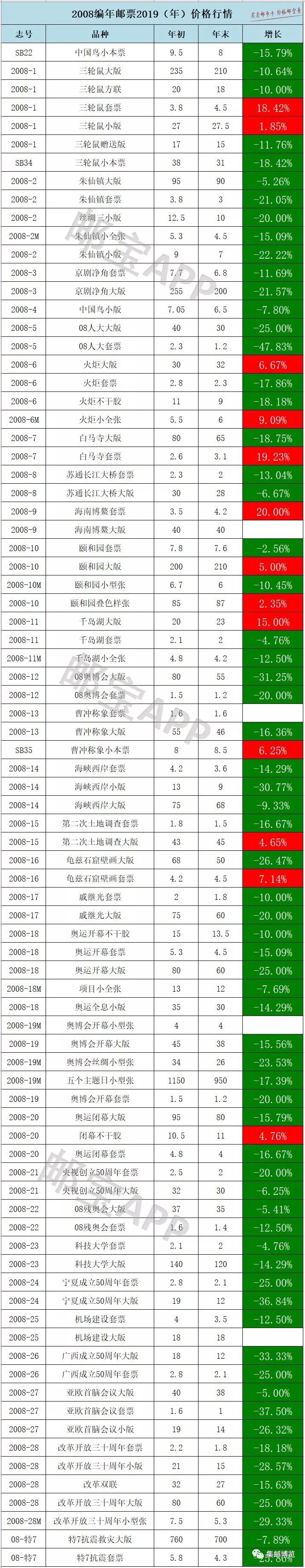 小编为大家整理了自1992年起编年邮票在2019年度的行情对比,将分几期陆续推送,