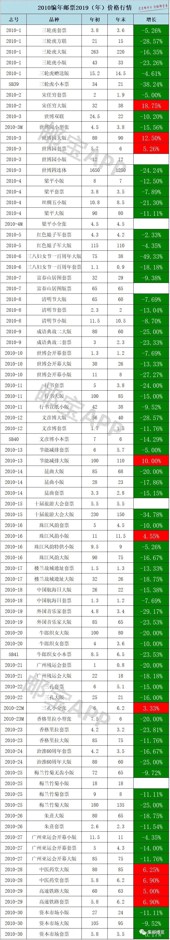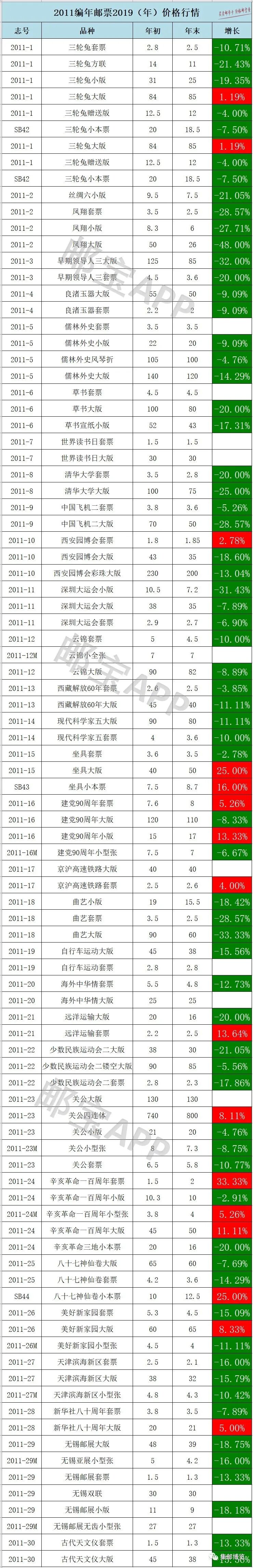 小编为大家整理了自1992年起编年邮票在2019年度的行情对比,将分几期陆续推送,