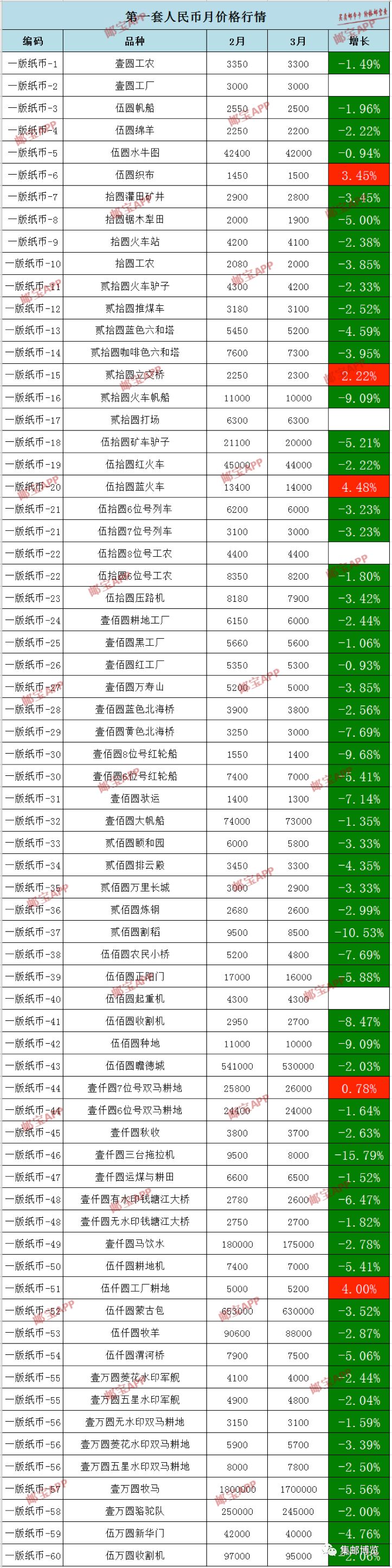 伍拾圆红火车上月行情为45000元,本月最新价格为44000元,下跌2.22%。