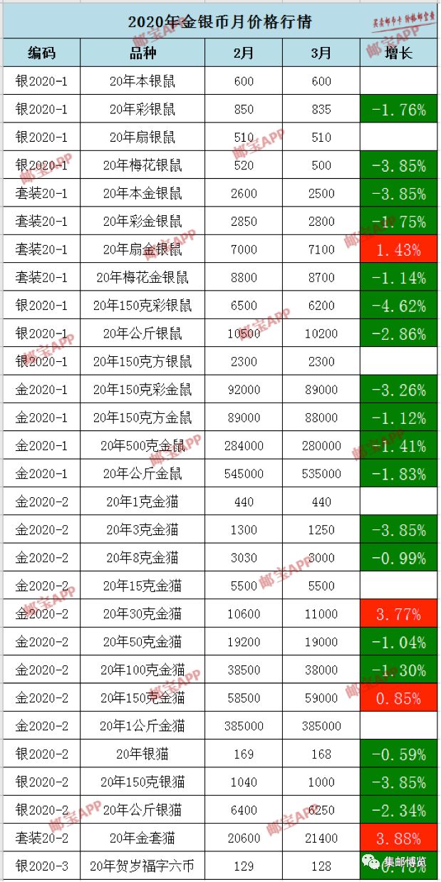 20年彩金银鼠上月行情为2850元,本月价格为2800元,下跌1.75%。