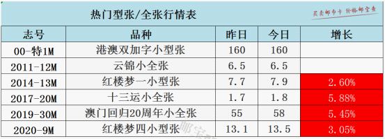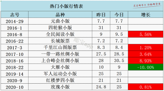 红楼梦四小型张今日最新价格为13.5元,昨日价格为13.1元,上涨3.05%。