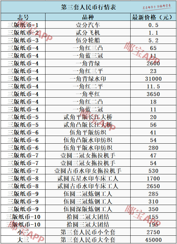 最近较为热门的纸币是第三套人民币,除此以外,第四套人民币也成交活跃,以下逐个介绍这些热门纸币的最新行情价。