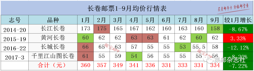 “长卷版”邮票是中国邮政自2014年开始发行的一个品种,至今已经发行了《长江》《黄河》《长城》和《千里江山图》。今天,通过“邮宝”APP为大家查询了邮票“长卷版”2020年的市场行情供大家参考。