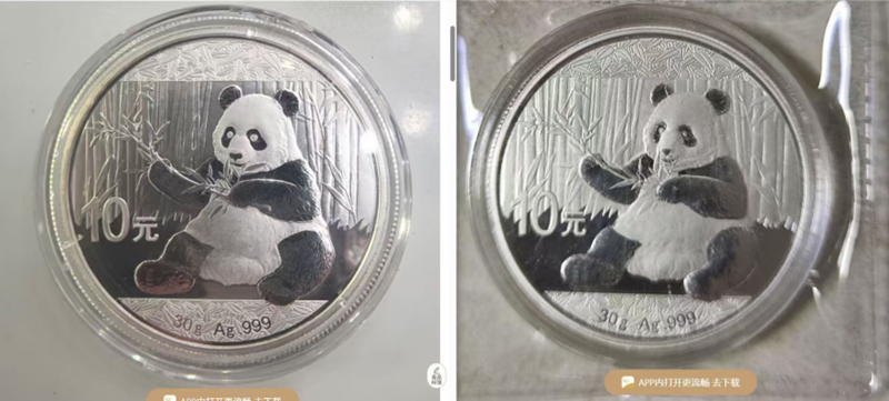 而假币通常采用普通钢模冲压,无法实现微米级的喷砂控制,导致熊猫看起来像“秃头猫”,建筑轮廓模糊不清,甚至出现“塌陷”般的平面化效果。这种工艺差距,是任何后期打磨都无法弥补的。