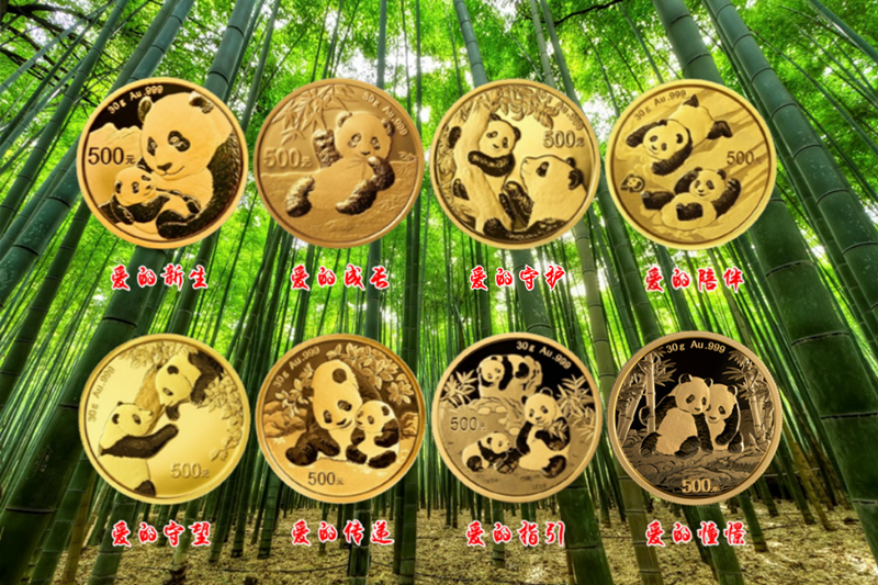 2026版熊猫币图案是“爱的十年”故事的第八版,主题为“爱的憧憬”,通过两只相依相偎的大熊猫构建出充满诗意的自然图景。设计师采用三角形构图,左右竹林倾斜延伸至画面外,既保持视觉稳定性,又暗含生命生长的动态张力。左侧熊猫轻扶竹枝倚靠伴侣,右侧熊猫低头倾听的姿态细腻传神,背景中三株新生竹笋破土而出,溪流潺潺间勾勒出“万物并育”的东方哲学意境。这种设计不仅是艺术创作,更是对中国生态文明理念的具象化表达。“爱的十年”系列,描绘了大熊猫从幼崽哺育到成年相伴的叙事脉络,如同一部跨越时空的自然纪录片,让收藏者在方寸之间见证生命的完整历程。