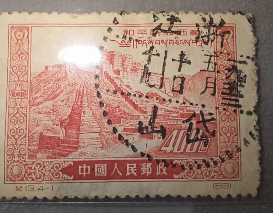 它的志号叫纪13,全名是《和平解放西藏》纪念邮票,1952年3月15日发行,全套4枚。