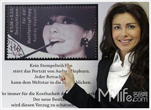据悉,这款邮票是德国邮政局在2001年印制,奥黛丽-赫本的儿子费勒不满照片被改动,由原本咬着太阳眼镜,变成咬烟嘴,邮局只好销毁1400万张已印好的邮票,前日拍卖的是当年寄给费勒的样本。 2010年10月16日,德国施莱格尔(Schlegel)拍卖公司在柏林阿德隆饭店举办慈善拍卖会,唯一的拍品就是德国2001年未发行的赫本邮票全张。这也是当年取消发行之后,赫本邮票全张首次公开亮相。结果落槌敲定成交价43万欧元(包含佣金),这一价格虽然有些低于市场预期,却再次刷新战后德国邮票最高拍卖价记录,也创下近十年世界各国发行邮票的最高拍卖价。 这个赫本邮票全张的出品人,就是赫本的长子费雷尔。1993年赫本去世后,费雷尔成为赫本遗产管理人。1994年费雷尔和同母异父的弟弟卢卡,联手在纽约建立奥黛丽-赫本儿童基金会(AudreyHepburnChildrenFund,缩写AHCF。1998年迁往洛杉矶),由费雷尔任基金会主席。 ![]() 画面原型源自1961年美国派拉蒙电影公司出品的《蒂梵尼早餐》的一个特写镜头 付拍的这个赫本邮票全张,原是当年德国邮政在征求意见时交给费雷尔的。在德国邮政取消发行赫本邮票后,费雷尔也没有交还这个全张,而是一直放在他的文件夹里。这次,他把珍藏9年之久的赫本邮票全张拿出来拍卖,并将拍卖所得的三分之一捐赠给联合国儿童基金会,其余捐赠给AHCF,全部用于儿童福利项目。 | |||
