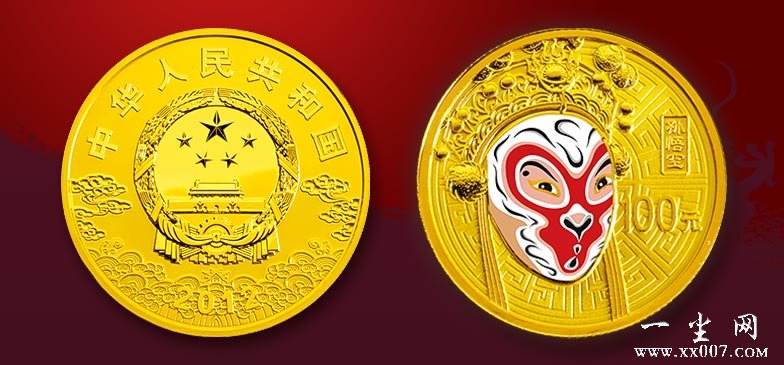 1/4盎司金币背面脸谱人物简介:“孙悟空”京剧脸谱,勾象形脸,主色红,配色金、白、黑。孙悟空是京剧《水帘洞》、《闹天宫》、《闹龙宫》、《智激美猴王》、《三打白骨精》、《十八罗汉斗悟空》等剧目中的主要人物,是京剧中武生行应工角色。孙悟空的脸谱勾红色脸缘,红心上凸,高逾脑门。沿鼻翅画鼻窝,大粉的眼窝中勾出两只凤眼,精灵俊俏,美观大方。眼圈勾金色,强调悟空出了八卦炉,已炼成火眼金睛。整幅脸谱既突出了猴王的面部特征,又显示了齐天大圣神采飞扬的王者气概。 | |||||||