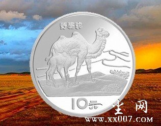 银币上是一头典型的成年公野生双峰骆驼,体型精瘦健壮,四肢细长稳健。头部稍长,鼻孔较大,胸部较宽,尤其是那一对双峰小而尖,呈锥形直立,正在沙漠中迤俪行走。野骆驼素有沙漠“苦行僧”之称,它们太可怜、太弱小了,狼、狐狸、熊都是它们的天敌,希望更多的人可以通过这枚银币真正认识和了解这稀世而又濒临灭绝的活化石。