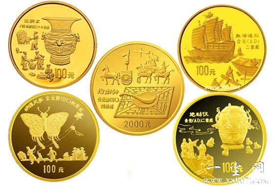 1盎司圆形金币(地动仪)正面图案: 长城,并刊国号,年号 背面图案:地动仪,并刊“地动仪,公元二世纪”中文字样及面额。精制币;面额100元,直径32mm,发行量为1000枚。