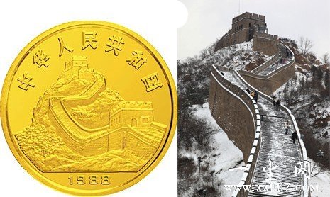 1988年发行的“戊辰龙”金银纪念币,共有品种4金4银1铂,背面图案没有采用名人名画,而是采用了九龙壁的局部图案,正面图案为长城(北京八达岭)局部为蓝本再创作。长城蜿蜒2万里,从来空中俯视长城宛如一条巨龙俯卧在中华大地,与中华“龙”所要展现的一切一切,正好相叠印。