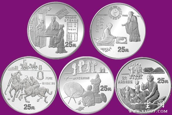 中国人民银行于1993年月日发行中国古代科技发明发现金银铂纪念币(第2组)一套,该套金银币共有5铂8金8银21枚金银币,均为中华人民共和国法定货币。